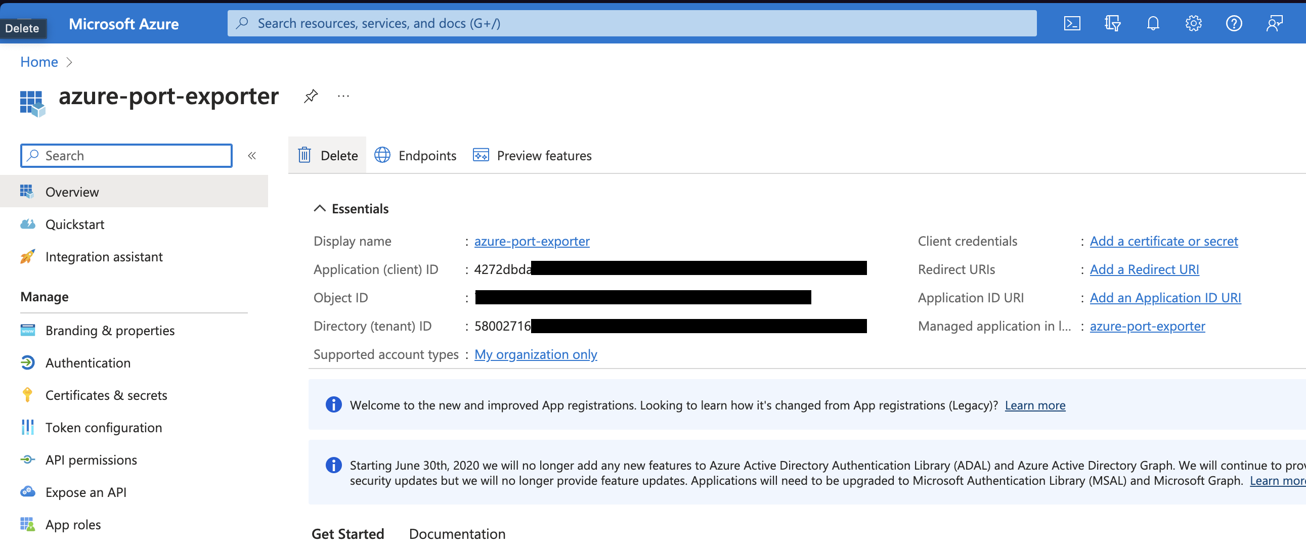 from the App Registration.
